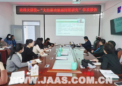 11月4日,沈阳农业大学园艺学科带头人、辽宁省特聘教授、国家大宗蔬菜产业技术体系岗位科学家冯辉教授,应省农科院科技交流合作处和经济植物研究所邀请,作了题为《大白菜功能基因组研究》的学术报告。会议采取线上、线下相结合的方式召开。经植所学术委员会主任赵福顺研究员主持会议。院合作处副处长滕占伟、经植所所长牟忠生参加会议。