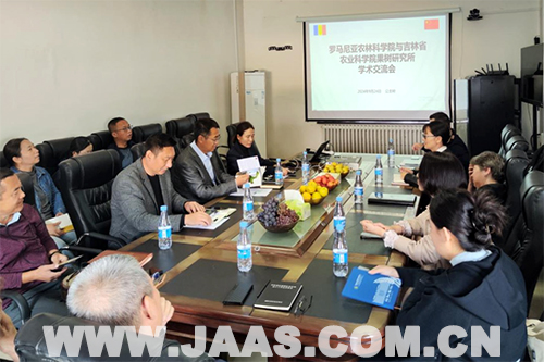 座谈会上,Viorel Cătălin OLTENACU就罗马尼亚果树新品种选育、光伏栽培、抗逆研究和果园智能化管理等作报告。副所长李海英就吉林省气候特点、果树所科技创新重点、新品种新技术和未来发展方向等作报告。双方就果树基础研究进展、育种方法、果园智能管理系统和抗晚霜、冰雹等栽培管理措施等进行了深入交流。