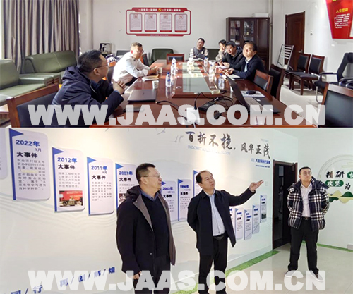 会前,郭新宇一行参观了大豆所展览室,蒋洪蔚介绍了省农科院大豆发展历史和取得的成就。